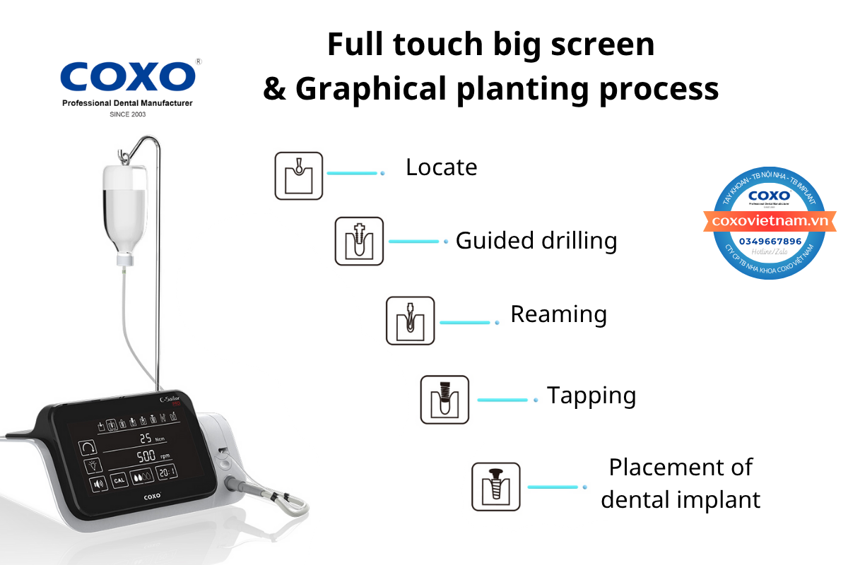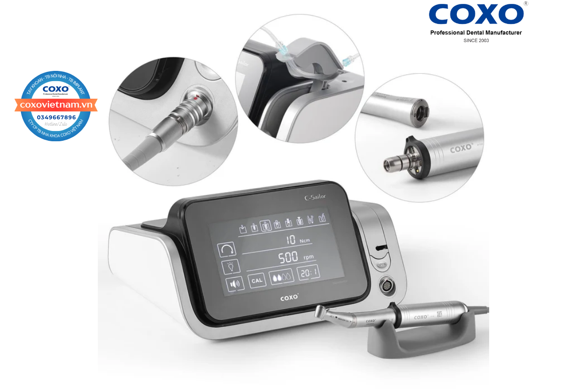 Một trong những lợi ích lớn nhất mà COXO C-Sailor Pro mang lại là khả năng tối ưu hóa quy trình làm việc. Nhờ động cơ mạnh mẽ và hệ thống kiểm soát điện tử chính xác, máy giúp các thao tác phẫu thuật và cấy ghép diễn ra nhanh chóng, dứt khoát và hiệu quả. Điều này không chỉ giúp bác sĩ tiết kiệm thời gian đáng kể, xử lý được nhiều ca hơn mà còn giảm thiểu thời gian chịu đựng của bệnh nhân trên ghế nha, mang lại trải nghiệm điều trị tích cực hơn.